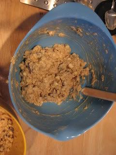 After picking Nana up from Zoe's house we decided it would be a terrific idea to make cookies. Specifically, Oatmeal Cranberry Drops, yummy-right?? I thought so. So, we stop at the store on the way home. And yes, I stop at the store with all the kids all the time. How would we eat otherwise? So, we go to the store. Dev's still in tact. No meltdown yet. In the car on the way home it begins. Lots of laughter in the backseat (where Isa, Kendie and Dev sit), I feel it coming..."Calm down guys, you're getting a little nuts back there." Still laughter it's louder and then screaming. Dev had ripped Kendie's Christmas Cracker to shreds. We were all of 1 minute from home. Time out before nap. I hate that. In for nap Dev goes with an apology to Kendie on the way. On the bright side it made for a milder baking cookie experience. I make lunch (late lunch) and prep the cookies. The kids finish and we start the cooking making.