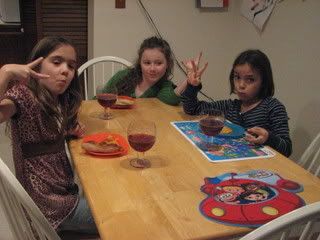 I only had 1/2 of the Gibson's this New Year's Eve. Okay, including us just 25% of the Gibson's were missing. Nana and Dev stayed the night at my Mom's house. She had a evening packed full of movies, movies and lots of lollipops! My Dad's quote is "Some nourishment is better than none." Hmmmmm....anyway, Isa had a two friends over and Madi is (yes, still) sick so we had a slumber party filled with pepperoni pizza, sparkling blackcherry juice and