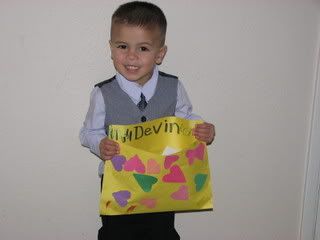 This has just been a fun Valentine's Day. I helped in Nana's class-we brought cookies and juice for Miss R to dish out to the Kindergarteners. When we came in to class Miss R was reading the ultimate favorite Guess How Much I Love You and she immediately asked Dev to come down and join the class. She is so good to Dev. She always thinks of him when we help out so he feels included. As he was sitting down listening I set up cookies and mailboxes for the Valentine Parade (passing of the Valentine's).